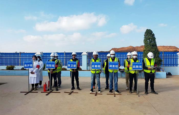 本次消防演練共分為6個組,分別為搶險組、保衛(wèi)組、后勤組、調(diào)查組、疏散組、救護組。事故設(shè)定為2020年 11月 27日上午,項目部辦公區(qū)二樓勞資員辦公室因違規(guī)使用大功率電器且無人在場導(dǎo)致辦公室起火。從現(xiàn)場安全員在進行巡查時發(fā)現(xiàn)火情,到進行警戒、撲救、救援、事故調(diào)查、事故上報等,消防演練有序開展。