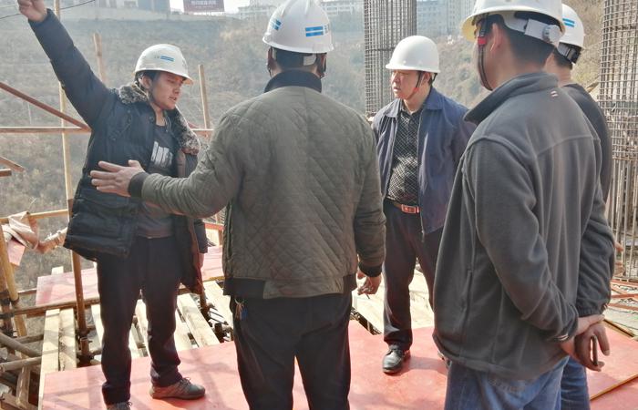 在驗收過程中,陳芝軒帶領(lǐng)項目部驗收小組通過對鋼管扣件等原材料及支架搭設(shè)各項參數(shù)進行現(xiàn)場檢查測量、聽取施工工藝及質(zhì)量控制措施匯報、核查拱架預(yù)壓專項施工方案等方式對該關(guān)鍵節(jié)點工程進行了檢查,同時提出了對支架的優(yōu)化措施及要求,最終形成驗收意見,同意拱架預(yù)壓平臺支架驗收通過,為項目部景觀橋預(yù)壓打下基礎(chǔ)。