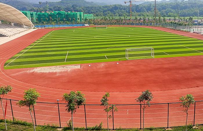 熱帶雨林的螞蟻也很熱情,剛進(jìn)場時(shí),測量員在茂密的草叢穿梭找點(diǎn),晚上下班回來時(shí)能擦完一整瓶藥膏。后來,在20多臺(tái)機(jī)械和100多名管理人員及工人的奮戰(zhàn)下,茂密的草叢變成一條條明亮的道路。看,已經(jīng)到了運(yùn)動(dòng)健兒們最喜歡的地方,國際運(yùn)動(dòng)比賽水平的400米足球場,硅膠籃球場,為這個(gè)新建的校區(qū)增添了勃勃生機(jī)。