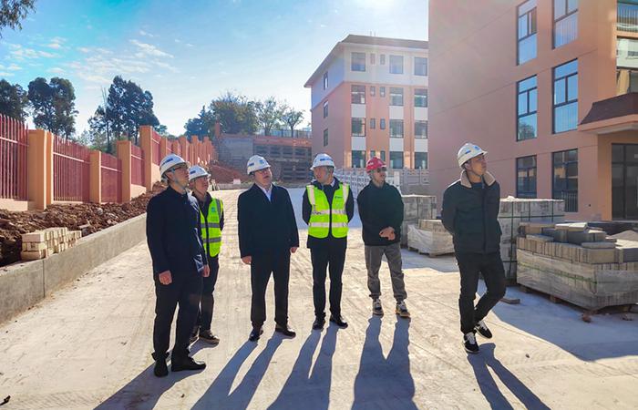 在石林民族中學(xué)項(xiàng)目,蔣璽實(shí)地查看項(xiàng)目現(xiàn)場,詳細(xì)了解項(xiàng)目當(dāng)前開展情況及一線職工生活狀況,對項(xiàng)目進(jìn)度、成本、安全、質(zhì)量管控等方面工作進(jìn)行指導(dǎo)。