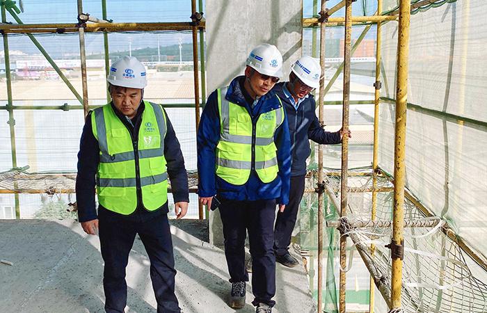 付雋蒼一行深入施工現(xiàn)場(chǎng),對(duì)1棟、2棟倉(cāng)庫(kù)基礎(chǔ)筏板澆筑及15棟倉(cāng)庫(kù)主體施工質(zhì)量、形象進(jìn)度進(jìn)行了詳細(xì)檢查,開展“橫縱到邊、不留死角”的安全隱患檢查。