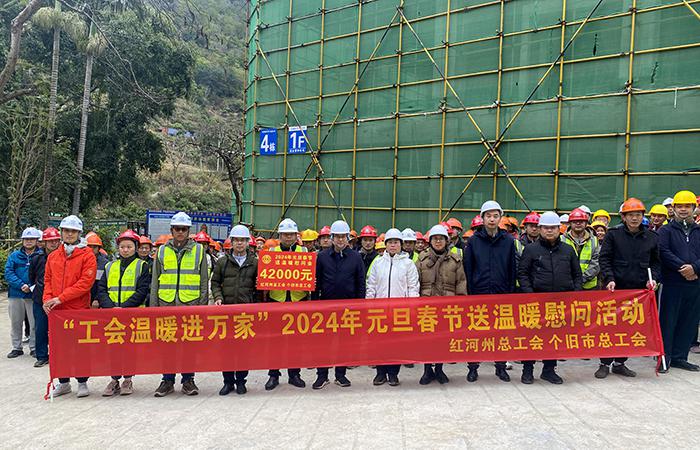 心系職工,情暖一線(xiàn)。1月23日,龍年新春佳節(jié)即將來(lái)臨之際,紅河州總工會(huì)黨組書(shū)記、常務(wù)副主席姜云,個(gè)舊市人大常委會(huì)副主任、市總工會(huì)主席許雪梅率慰問(wèn)組到公司第二直管項(xiàng)目部負(fù)責(zé)施工的個(gè)舊市工人療養(yǎng)院提升改造項(xiàng)目開(kāi)展“工會(huì)溫暖進(jìn)萬(wàn)家”2024年元旦春節(jié)送溫暖慰問(wèn)活動(dòng)。