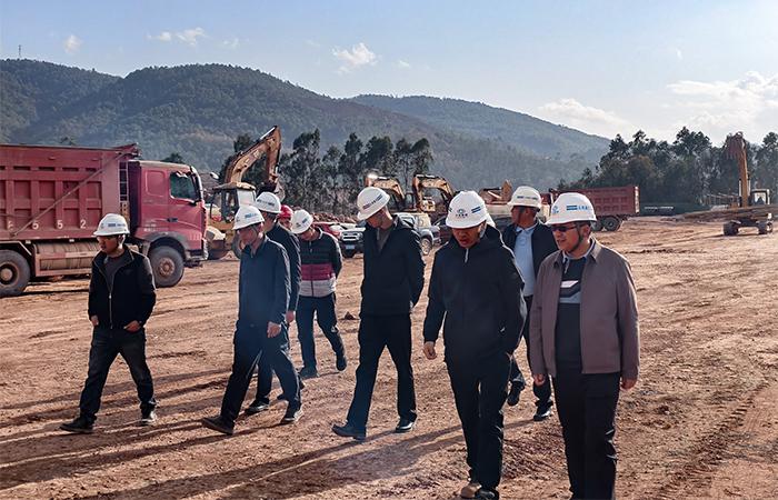 楊永一行實(shí)地查看項(xiàng)目規(guī)劃布局,聽(tīng)取項(xiàng)目部對(duì)現(xiàn)場(chǎng)土方的開(kāi)挖、運(yùn)送及碎石等工作的安排,并對(duì)接下來(lái)的工作開(kāi)展做出要求。
