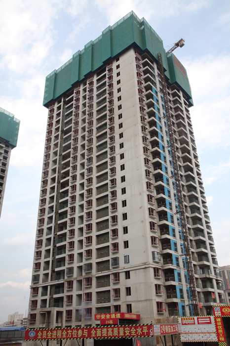 官渡區(qū)五里中央商務區(qū)(CBD)A22地塊主體工程(一標段)位于昆明市民航路于菊苑路交叉口,于2015年1月8日進場施工,總建筑面積8萬平方米,地下室三層,地上兩棟,分別為Z5棟20層、Z6棟28層。該項目也是公司創(chuàng)品牌的重點項目,施工前期項目部從安全、質(zhì)量、成本、技術、文明施工等進行了全面的策劃,在施工過程中采用鋁模施工新工藝,并進行了優(yōu)化和改進,加強細部管理、質(zhì)量控制、窗框壓槽細化,最終達到混凝土接觸面不粉刷要求。此外,項目外墻膩子、外窗、欄桿隨主體結構同步向上施工,主體結構封頂后爬架采用空中解體方式拆除,在質(zhì)量進度成本方面均有較好的效果,在建設單位組織的季度考核中三次奪得桂冠。