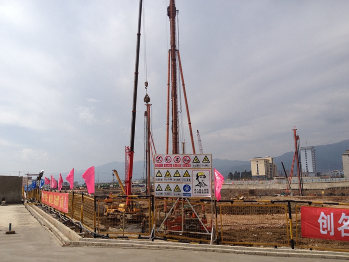 截止目前,該工程完成“三軸深攪止水樁”7887.5M、長螺旋鉆孔灌注樁(支護樁)8899M、土方開挖30萬M2、噴錨護壁3610M2、工程樁160余棵(4480M)、冠梁、連梁、腰梁、錨索等施工工序也按施工組織設計進度穩(wěn)步規(guī)范推進。