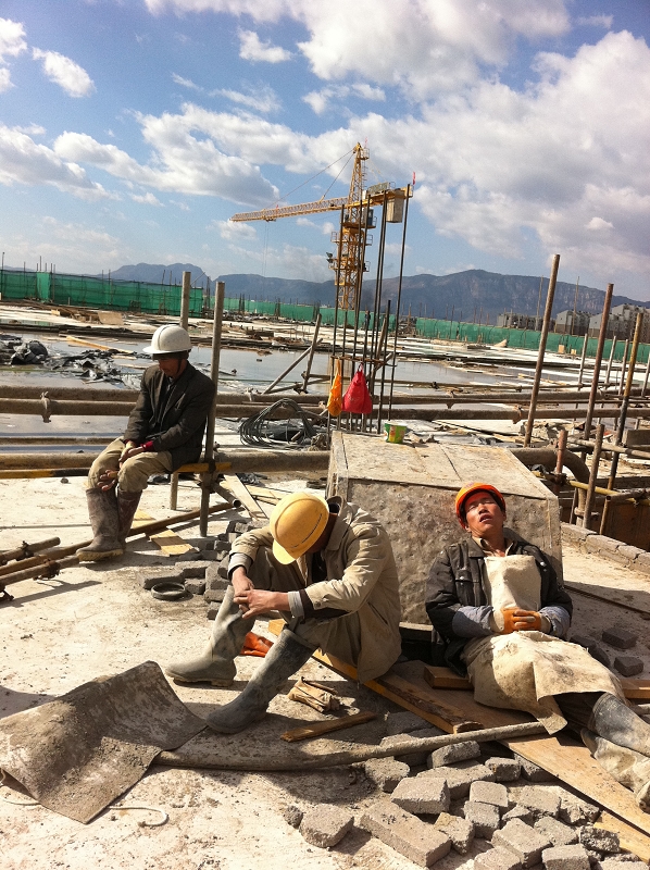 疲憊不堪的建筑工人