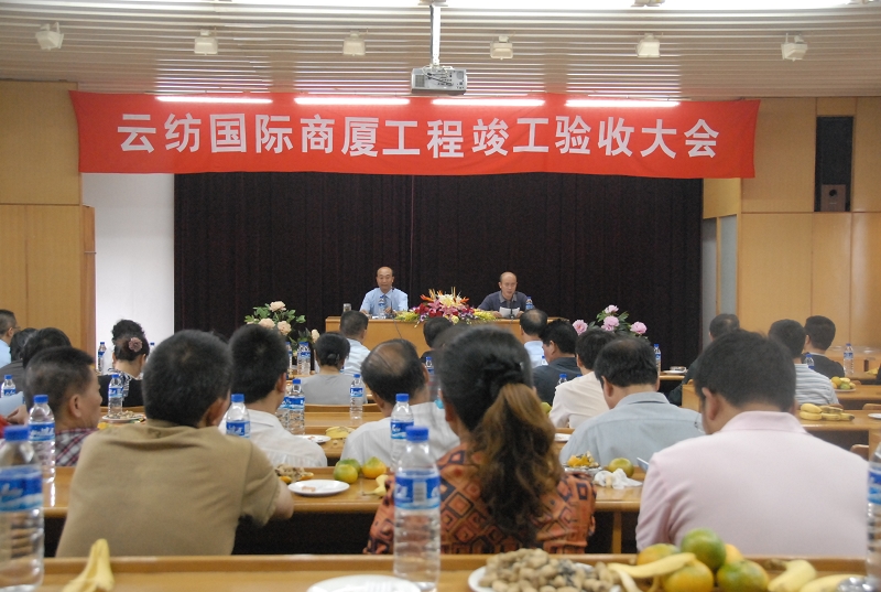 9月6日,云紡國(guó)際商廈工程召開(kāi)竣工驗(yàn)收會(huì),公司董事長(zhǎng)、黨委書記楊福和,常務(wù)副總經(jīng)理李文智,總工程師焦倫杰等領(lǐng)導(dǎo)出席竣工會(huì)。