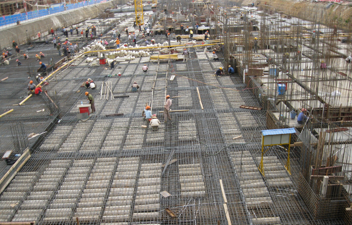 現(xiàn)澆鋼筋混凝土空心樓蓋技術是2005年7月建設部在全國推廣使用的一項新技術,該樓板是無明梁的空心樓板,暗梁、勒梁相當多,對于五公司來說空心樓板施工是第一次,怎么辦?作為項目總工的白建萍陷入了沉思,無論如何總要有第一個吃螃蟹的人。經(jīng)過設計院推薦,他們組織工長、主工長、操作班組負責人到新都昌調(diào)研觀摩,到云南省唯一的廠家——云南艾瑞克建筑材料有限公司了解學習現(xiàn)澆鋼筋混凝土空心樓蓋技術,但是根據(jù)廠家的技術人員介紹,這種管模質(zhì)量很輕,所以施工過程中首先必須解決抗浮力的問題,不僅要防止水平位移,還要防止豎向上浮,因為混凝土下去之后如果管子的浮力大,管子浮起來就會把整塊頂板上層鋼筋頂起來,最終導致把整塊頂板頂起來,造成嚴重的樓板質(zhì)量問題。另外還要解決的就是下部的問題,如果管子的間距控制不好,就會造成混凝土粗骨料下不去,混凝土澆筑完凝固收縮之后,整個下面就全部是水泥漿,同樣會造成樓板質(zhì)量問題。針對這些問題,通過與艾瑞克公司多方溝通,在廠家給直一部提供了一些技術措施的基礎上,項目部進行了深入細致的研究,結(jié)合現(xiàn)場施工實際進行改進,最后確定:在板底下層鋼筋扎好之后,把小梁和勒梁分為網(wǎng)格狀,再把水泥波纖管模排放在里面,管模兩端用鐵絲固定在下層鋼筋上防止水平位移;對于上浮問題,則按800mm間距把梁筋固定在模板上,然后再把模板固定在下面支撐架體上,小梁、勒梁主筋與主梁主筋再焊接固定,形成一個整體,阻止管模上浮,最后再在管模兩端上部垂直方向設置直徑12mm的抗浮鋼筋,再來扎上層鋼筋。通過這些措施,直一部第三城•丹槿園項目現(xiàn)澆鋼筋混凝土空心樓蓋施工取得了較好的效果,沒有出現(xiàn)任何質(zhì)量問題。從建設方的角度來說這種空心樓蓋技術減少了投資,但是對于施工方來說,卻增加了較大的施工難度,工序復雜,比正常的實心樓板施工復雜很多,“在空心樓蓋施工過程中,我們的工期想搶都搶不回來?!卑捉ㄆ颊f道。由于是第一次摸索施工,他們的第一塊空心樓蓋施工從支模、扎鋼筋、排管模到澆筑混凝土,足足用了25天時間,比普通樓板施工花的時間5倍還多,比正?,F(xiàn)澆空心樓蓋施工時間3倍還多。可想而知他們投入了多少的時間和精力。在直一部施工的2萬多平方米地下室頂板中,有近1.7萬平方米的空心樓板,用了近5萬根標準空心管模。盡管工作量大,工序復雜,工期緊,直一部想盡辦法,加班加點,40多天時間完成了全部地下室頂板的施工。“這段時間以來,整個項目班子24小時守在工地上,加上道路有限,材料堆放場地狹窄,所以,我們要克服的困難很多?!卑捉ㄆ颊f?!爱敃r,由于工期等原因,施工已經(jīng)無法形成流水,最終就形成了平行施工。那時,現(xiàn)場6臺塔吊每天24小時作業(yè)?!笔谝哺袊@道。由于形成平行施工,他們必須組織大量的勞動力和材料進場才能滿足現(xiàn)場的需要,在喬元勞務公司的支持下,每天現(xiàn)場操作人員平均達到500余人,多的時候700余人,一眼看去整個施工現(xiàn)場密密麻麻幾乎都是人。人是進來了,材料不進場進度一樣上不去,而場地又那么狹窄,幾乎沒有堆放的場地,這種情況下,材料是不可能先進場了。但是,進度卻必須趕上去,承諾必須兌現(xiàn)。面對挑戰(zhàn),他們沒有退縮,挑戰(zhàn)就是機遇,抓住機遇就抓住了市場。項目部實行材料計劃兩天一報,材料到場現(xiàn)到、現(xiàn)下、現(xiàn)用。人累點,但進度上去了,值!