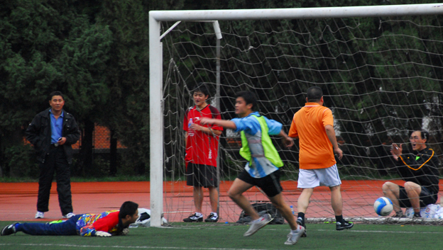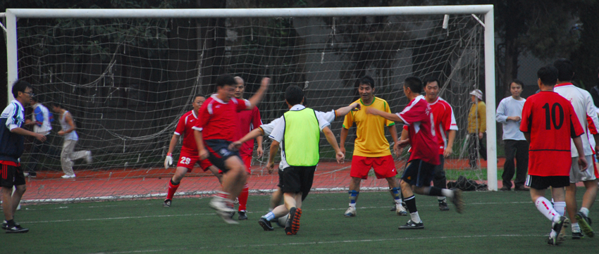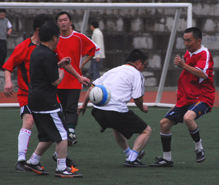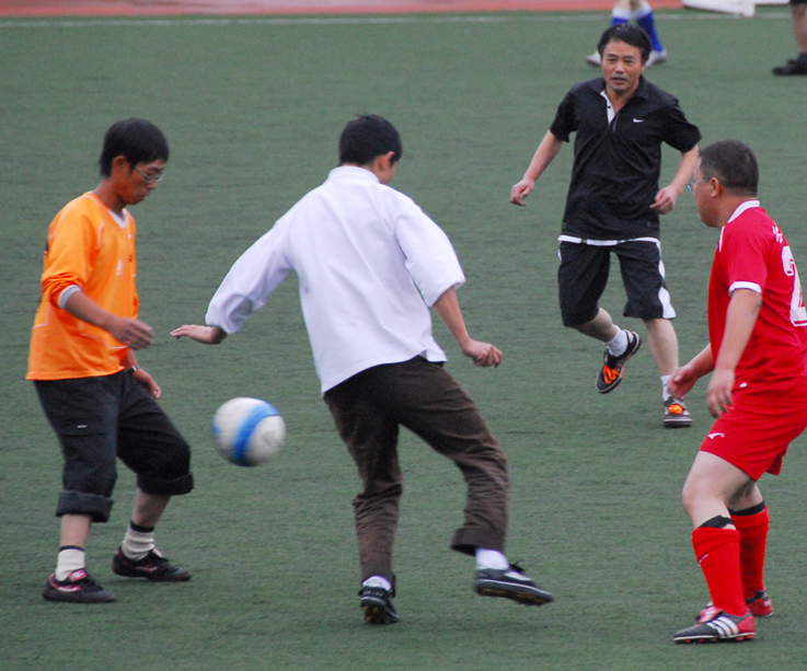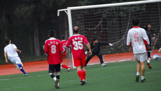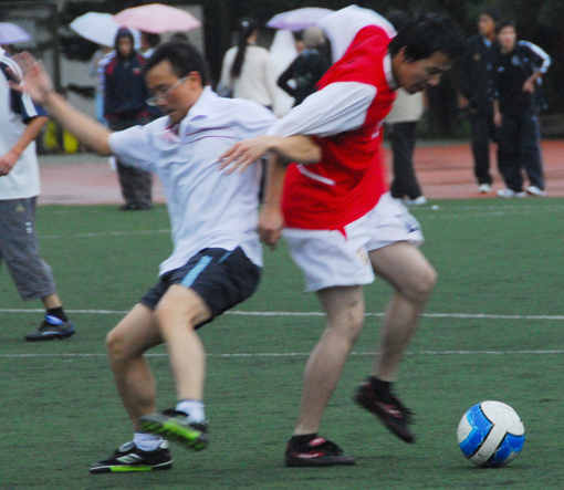 在晚秋的霏霏細(xì)雨中,五建五分公司與公司機關(guān)于11月4日舉行了一次足球友誼賽,活躍職工業(yè)余文化生活,增進友誼。 伍軒 攝影