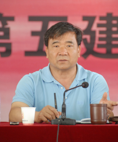 圖為5月10日公司董事長(zhǎng)楊福和在第五直管項(xiàng)目部機(jī)構(gòu)調(diào)整動(dòng)員會(huì)上講話